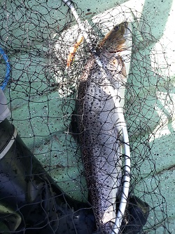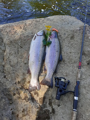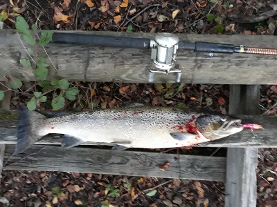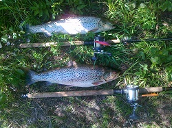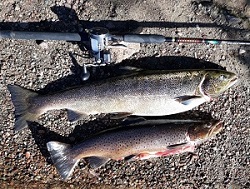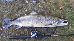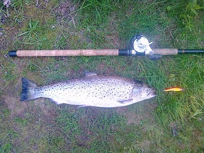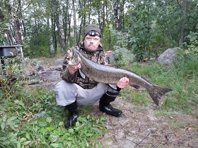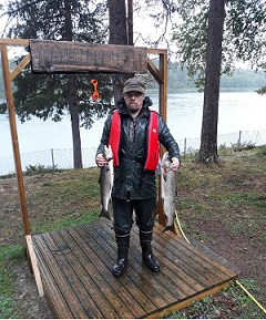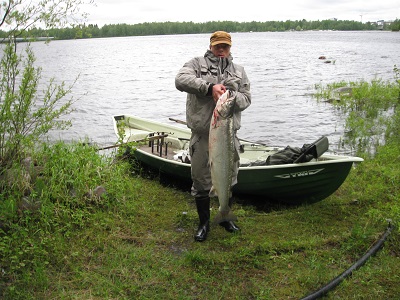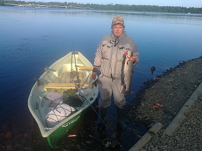 Minä ja saalista. Vasemmalla lohi 6,6 kg Kojakalla ja oikealla lohi Lohakalla 13 kg.