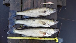 joko parvesta eksynyttä hädissään poukkoilevaa kalaa, tai lienet tehokkainta on vaurioituneen kalan jäljittely. Kaloilla