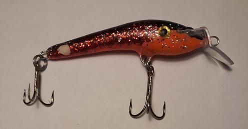 Etuosa oranssia. Mahan takaosa fluori punainen. Perässä keltainen täplä.