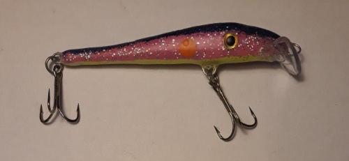 Vaapussa on sininen hile selkä, salmon pinkki kyljet hologrammi hopeahileellä ja oranssilla iskutäplällä.